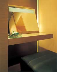 La progettazione di tutte le suites dell' hotel, inoltre, ha reso possibile, in caso di necessità, di poter far scomparire il letto all'interno del volume della testata e di diventare così non più luoghi privati, ma luoghi di ricevimento.