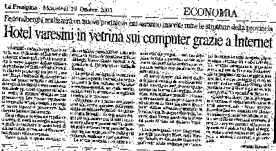 Varese - Federalberghi entra in rete. E' dedicato ad Internet e alle soluzioni tecnologiche più all'avanguardia il nuovo impegno dell'associazione degli albergatori finalizzato ad offrire alla clientela prestazioni sempre al passo coi tempi. Nell'epoca del risveglio turistico del nostro territorio e del rilancio del ruolo della città di Varese come location ideale per eventi congressuali ad alto livello, le strutture alberghiere non possono certo farsi trovare impreparate di fronte alla richiesta sempre crescente di servizi innovativi proveniente dalla clientela busines ma non solo.