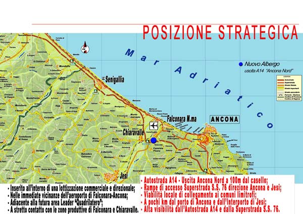 Inserito all'interno di una lottizzazione commerciale / direzionale, nelle immediate vicinanze dell'aereoporto di Falconara - Ancona, adiacente alla futura area leader "Quadrilatero".