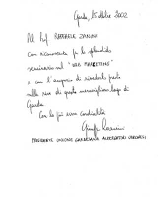 Al Prof. Raffaele Zanini con riconoscenza per lo splendido seminario sul "Web Marketing" e con l'augurio di rivederlo presto sulle rive di questo meraviglioso lago di Garda.