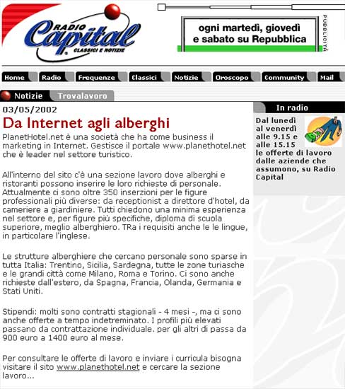 PLANETHOTEL.NET è una società che ha come business il marketing in Internet. Gestisce il portale www.planethotel.net che è leader nel settore turistico.