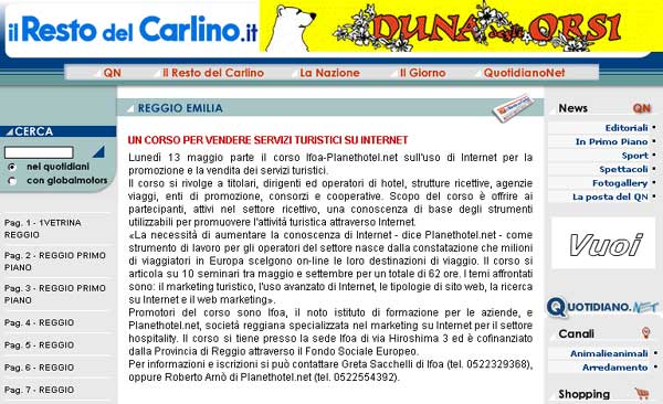 Promotori del corso sono Ifoa, il noto istituto di formazione per le aziende, e PLANETHOTEL.NET, società reggiana specializzata nel marketing su Internet per il settore hospitality. Il corso si tiene presso la sede Ifoa di via Hiroshima 3 ed è cofinanziato dalla Provincia di Reggio attraverso il Fondo Sociale Europeo.