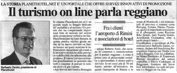 "Apt Servizi dell'Emilia Romagna - spiega Roberto Arnò, che si occupa di contenuti e comunicazione per il portale reggiano - è stata il primo ente di promozione turistica a sperimentare il nostro nuovo servizio. In tre mesi più di 70 siti hanno aderito all'iniziativa: tra questi l'Aeroporto di Rimini e le terme di Monticelli, i siti istituzionali di province e comuni come Bologna, Ferrara, Parma, Piacenza, quelli di importanti associazioni di albergatori, come Riccione Bike Hotels, Italy Family Hotels, AssoHotels Cesenatico, oltre a molti singoli hotel".